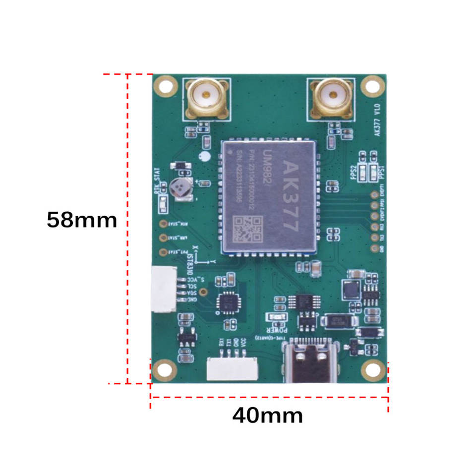 AK377ระบบ GNSS ความถี่เต็มรูปแบบซม. คลาส RTK โมดูลปรับตำแหน่งเสาอากาศแบบคู่โมดูล UM982 IST8310ตำแหน่ง Autopilot TTL D372