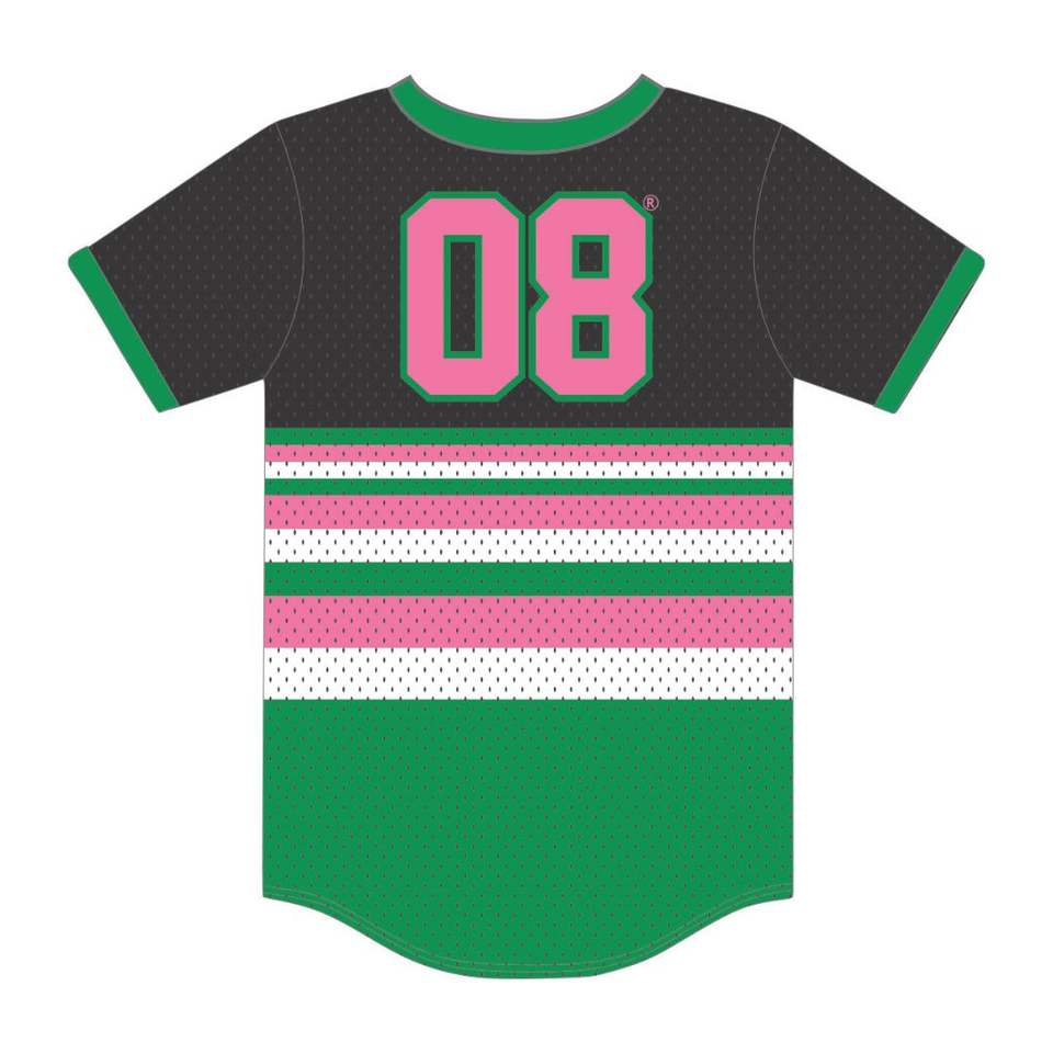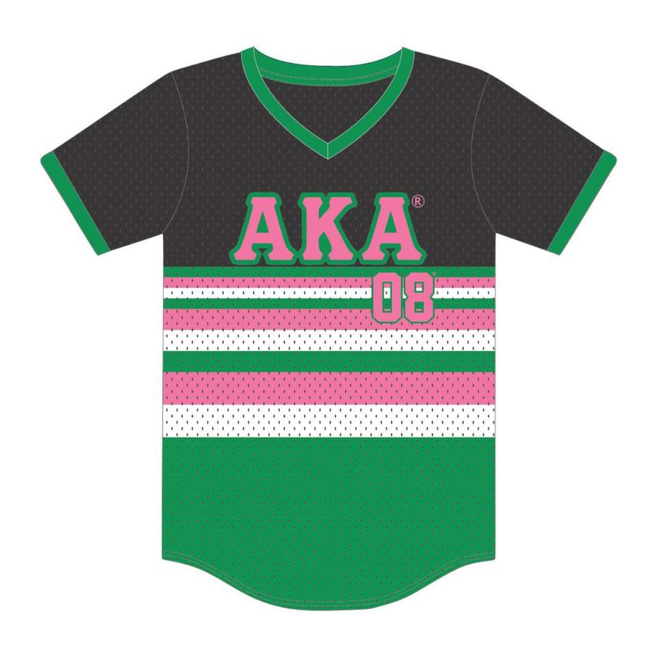 AKA Black Striped Pinstripe Pullover Baseball Jersey 100% Polyester Mesh Sorority Apparel V Neck T Shirt Embroidered Applique