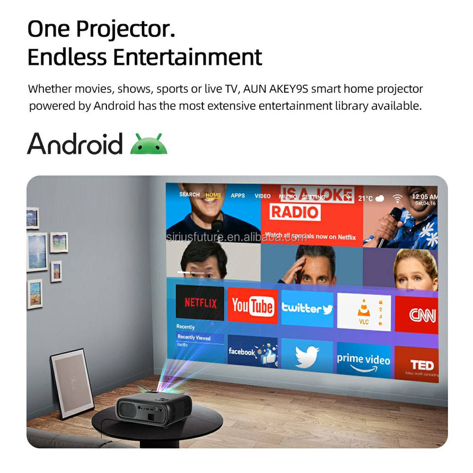 โปรเจคเตอร์ Android AKEY9S แบบพกพาขนาดเล็ก ความละเอียด 1080P 4K เลเซอร์ โฮมเธียเตอร์ ความสว่างสูง สมาร์ททีวี เล่นเกม ฟุตบอล Netflix OEM
