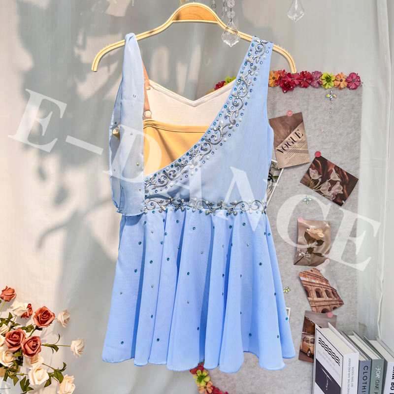 ชุดนักเต้นสำหรับเด็กชุดเล่นสเก็ตลีลาสำหรับเด็กผู้หญิงชุด AL-R0843มีคริสตัลสำหรับการแสดงบนเวที