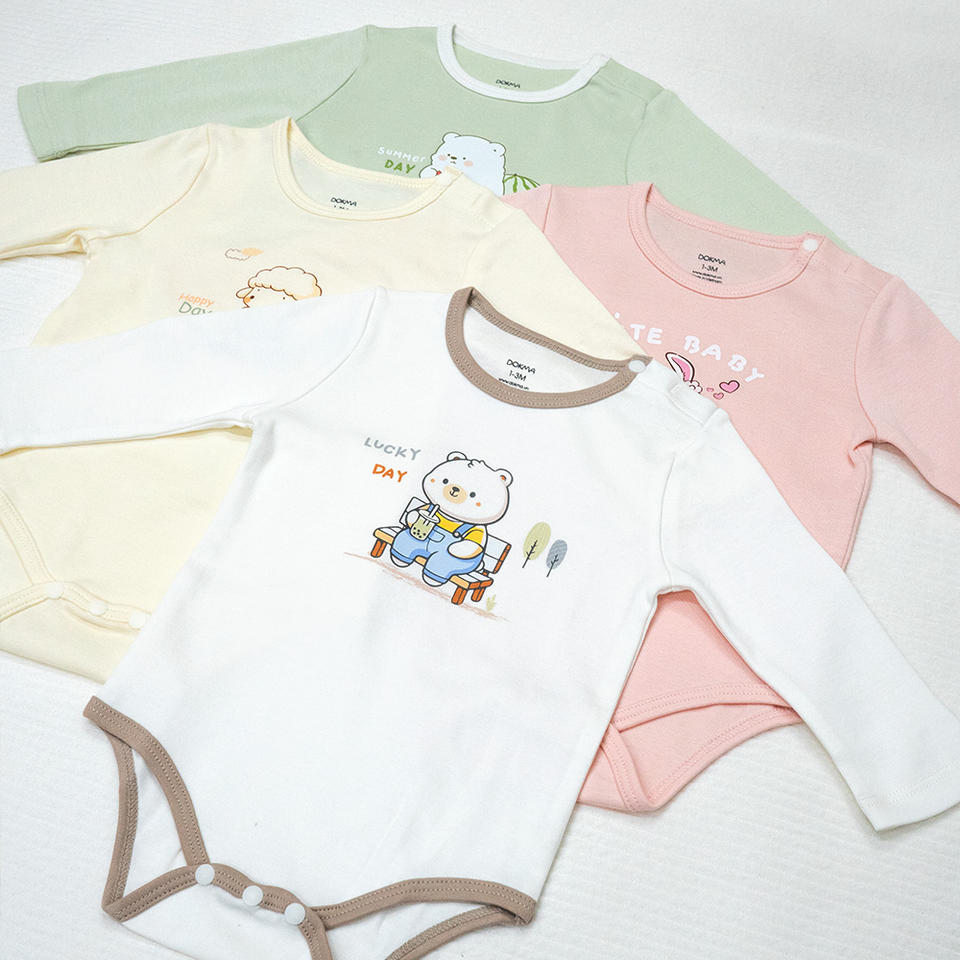ชุดกิโมโนเด็ก ALB10 ลายการ์ตูนน่ารัก แบบ unisex คอกลม แขนยาว ติดกระดุมเม็ดเดียว พิมพ์ลายด้วยเทคนิค Heat-Transfer ผ้าถักนิตติ้ง 100% ออร์แกนิค