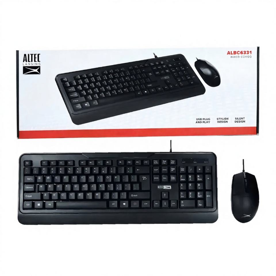 ALBC6331 Altec Lansing คีย์บอร์ดและเมาส์แบบมีสายพลาสติกใหม่ 104 ปุ่ม ป้องกันการกดผิดพลาด พร้อมพอร์ต USB 3.0 สำหรับสำนักงาน