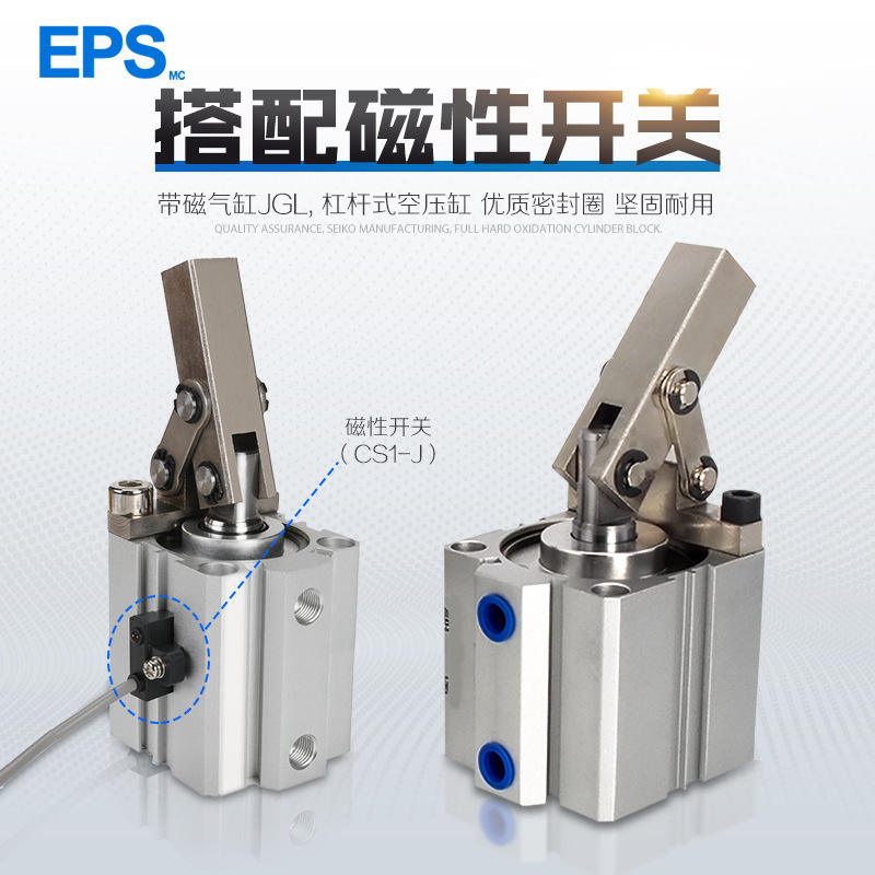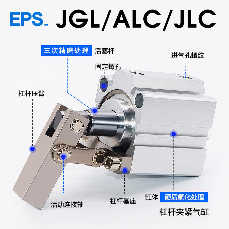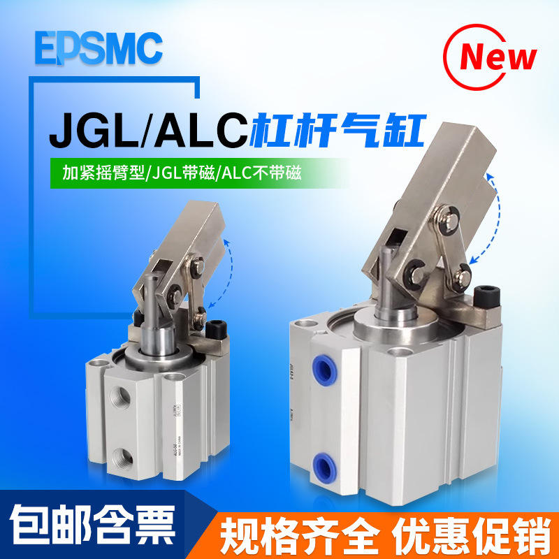 กระบอกลมแบบคันโยก ALC/JGL รุ่น 25/32/40/50/63-S พร้อมแขนโยกสำหรับกด กระบอกลมแบบหนีบ
