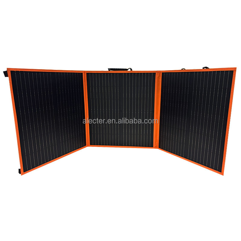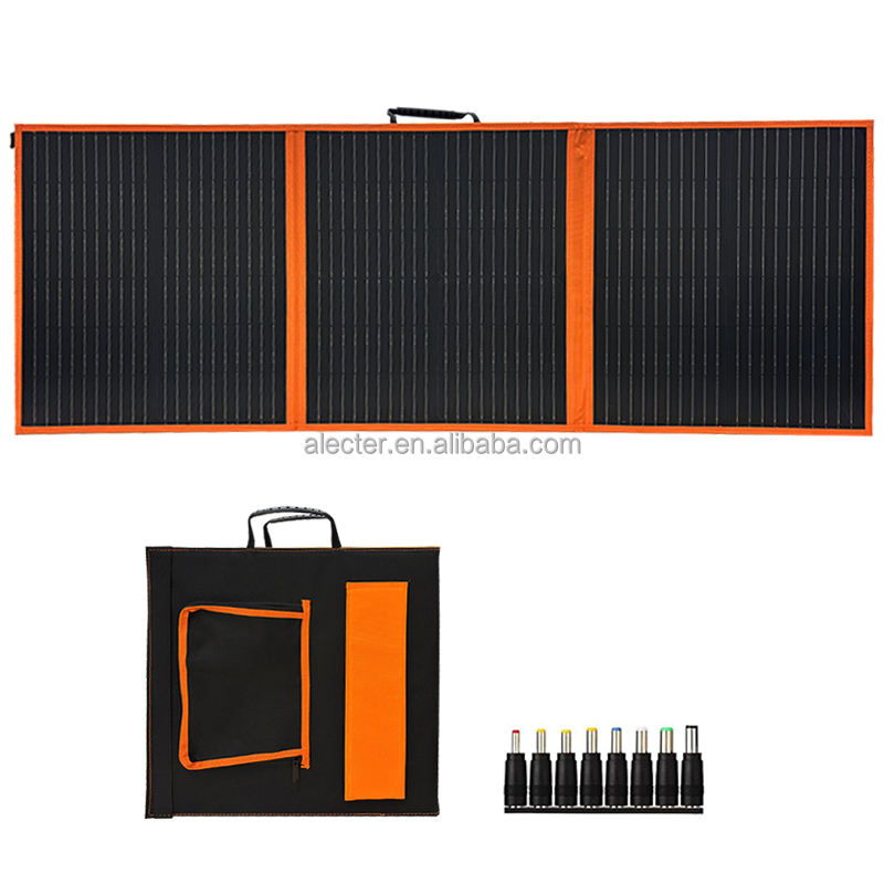 แผงโซลาร์เซลล์แบบพกพา ALECTER ประสิทธิภาพสูง 23% 100W โมโนคริสตัลไลน์ พับได้ กันน้ำ IP65 รับประกัน 12 เดือน สำหรับรถบ้าน เรือ สีดำ