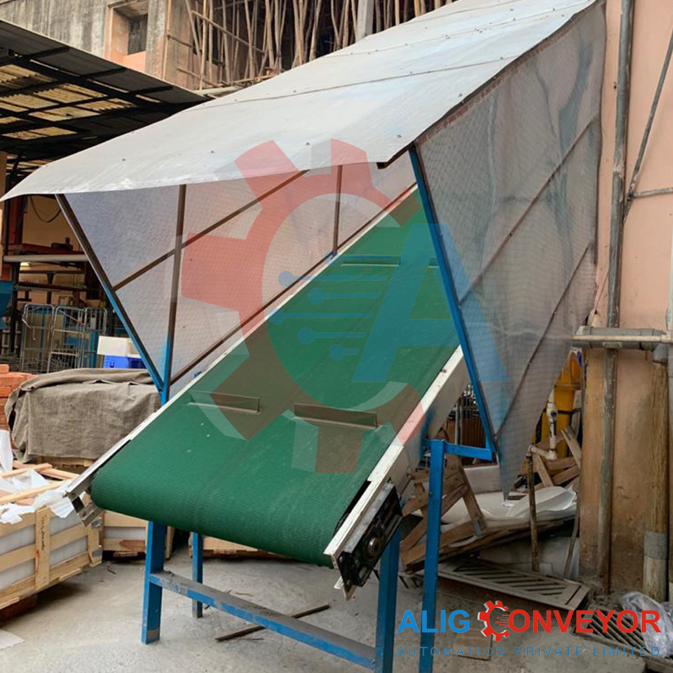 ALIG CONVEYOR ผู้ผลิตสายพานลำเลียงแบบเอียงที่ทนทาน พร้อมสายพาน PVC/ยาง ปรับความเร็วได้ สำหรับทุกประเภทของงาน