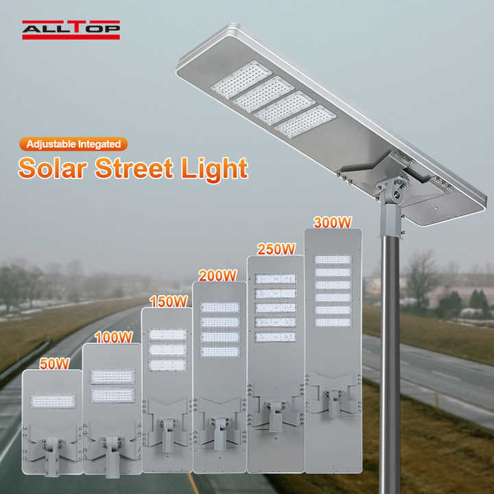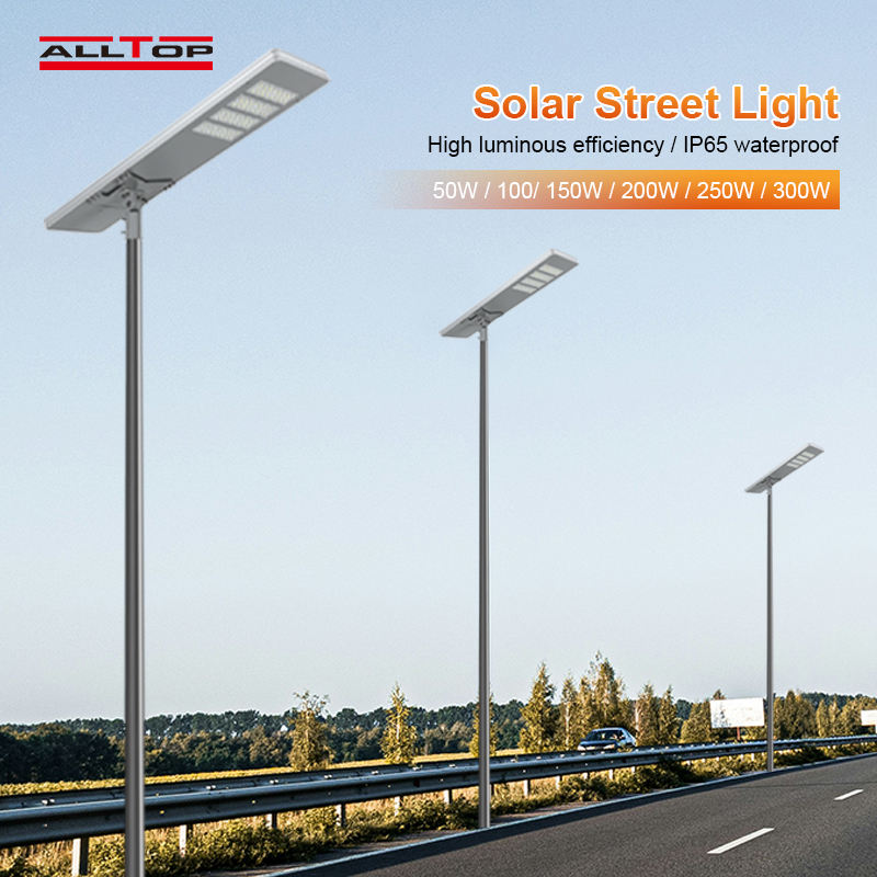 Alltop ไฟถนนพลังงานแสงอาทิตย์แบบออลอินวัน, ไฟถนนพลังงานแสงอาทิตย์กลางแจ้งกันน้ำ50W 100W 150W 200W 250W 300W