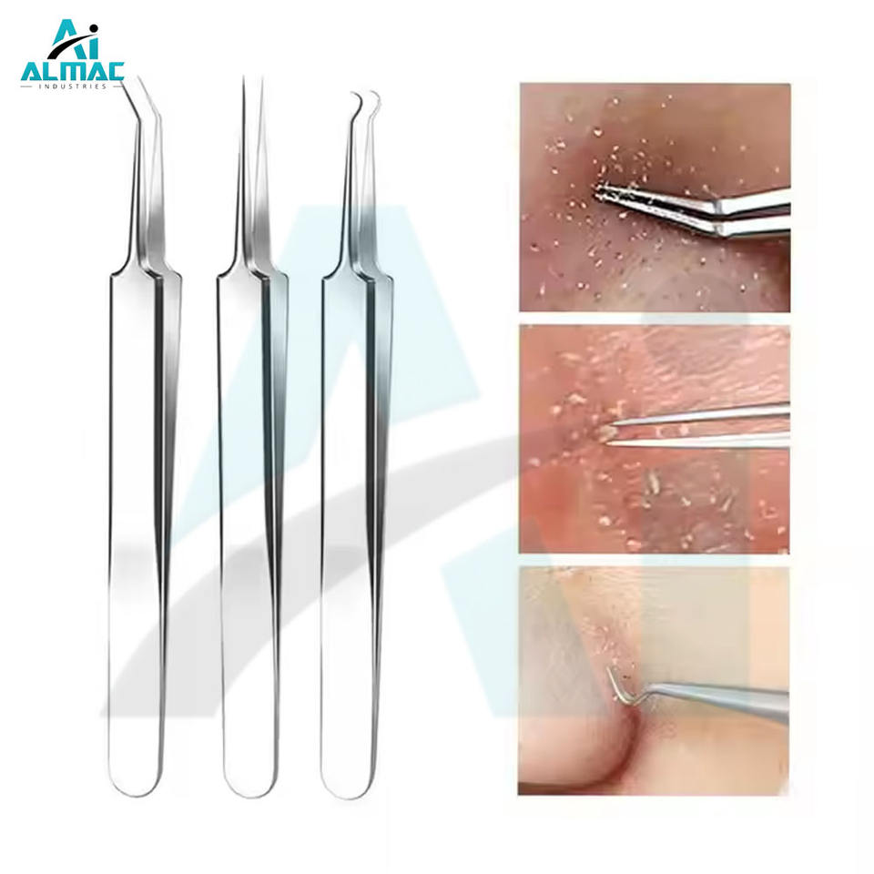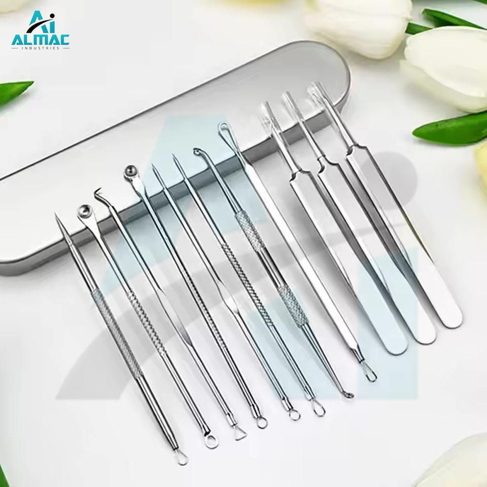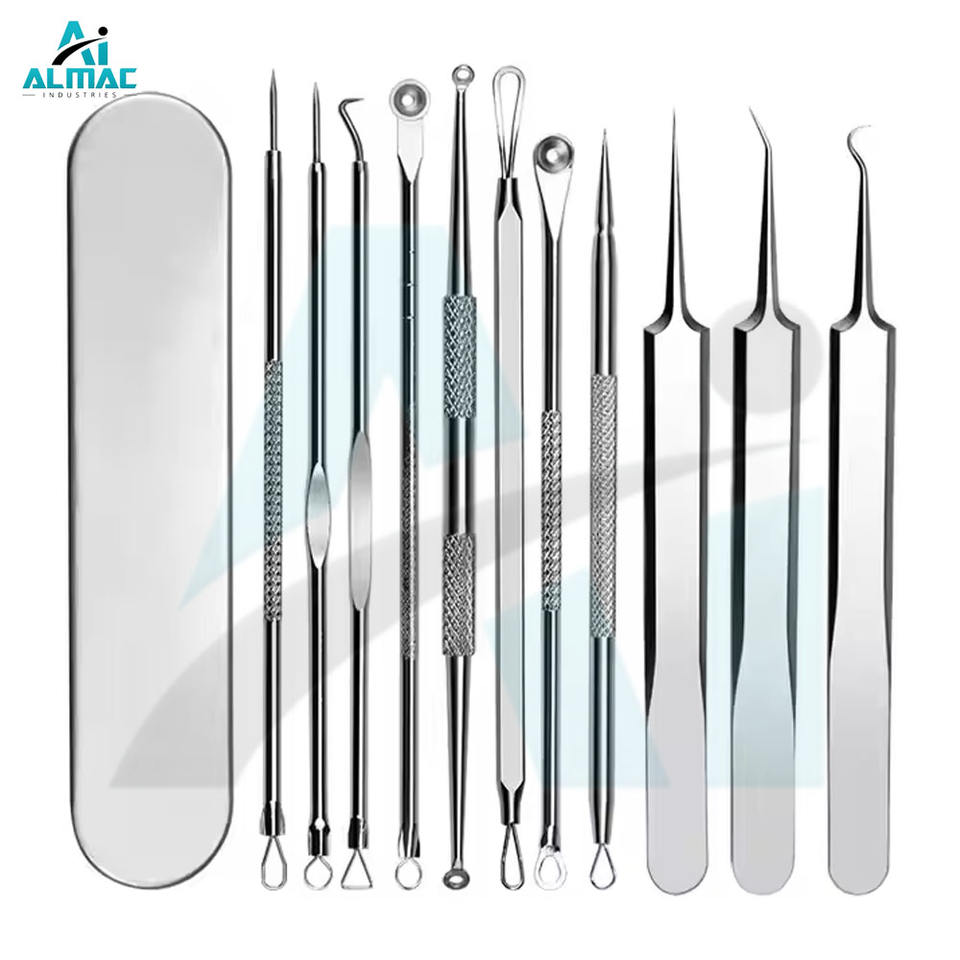 ชุดเครื่องมือกำจัดสิว ALMAC 11 ชิ้น ทำจากสแตนเลส ใช้ซ้ำได้ คุณภาพสูง พร้อมแหนบ