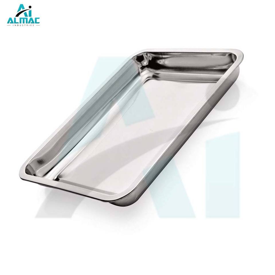 ถาดอเนกประสงค์สแตนเลสทางการแพทย์ ALMAC ทนทาน สามารถนึ่งฆ่าเชื้อได้ ใช้งานด้วยมือ ได้รับการรับรองมาตรฐาน CE สำหรับโรงพยาบาลและคลินิก