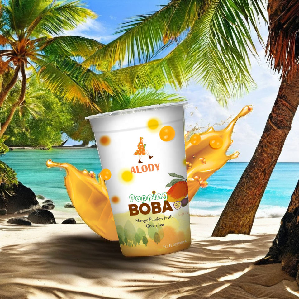 ALODY ราคาสุดคุ้ม ป๊อปปิ้งโบบา รสแมงโก้ รสเสาวรส ลูกตาไทเปีย ชาเขียว ชานมไข่มุก 480 มล. พร้อมแก้วขาย