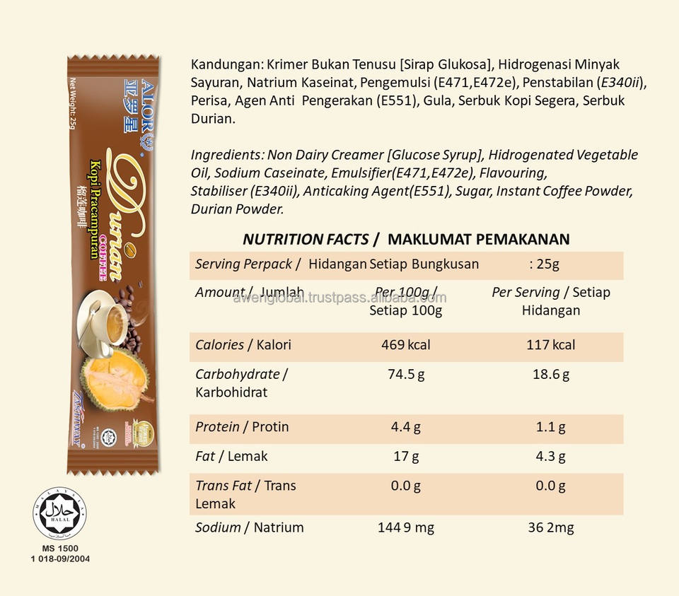 เนื้อหา:ผงกาแฟสำเร็จรูปผงทุเรียนน้ำตาล