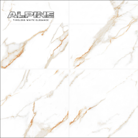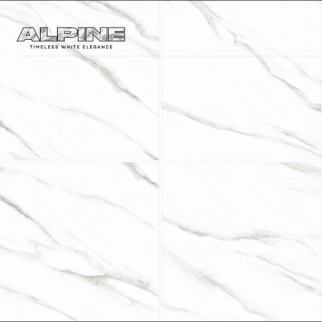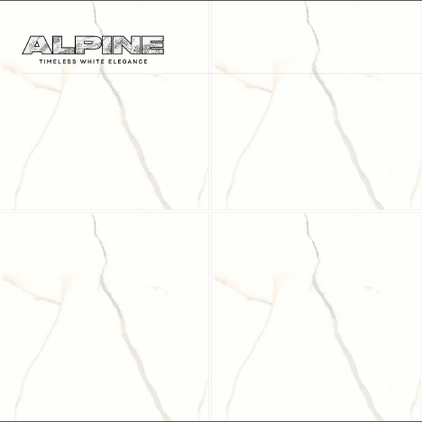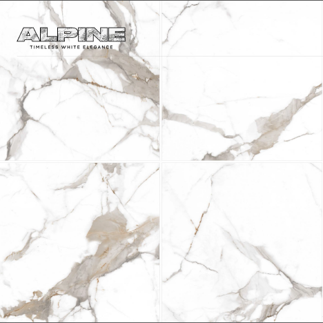 กระเบื้องหินอ่อน Calacatta Carrara ขนาด600x600มม. ทรงอัลไพน์สีขาวสง่างามพื้นผิวมันวาวสำหรับผนังและพื้นใช้จาก Novac เซรามิก