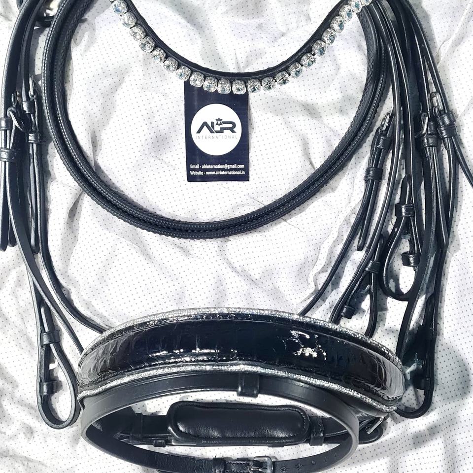 อุปกรณ์ขี่ม้า ALR EQUESTRIANS บังเหียนม้าหนังแท้ทำมือ ทนทาน สวมใส่สบาย ปรับขนาดได้ พร้อมโลโก้ เหมาะสำหรับขี่ม้าแบบเทรลและแข่งม้า