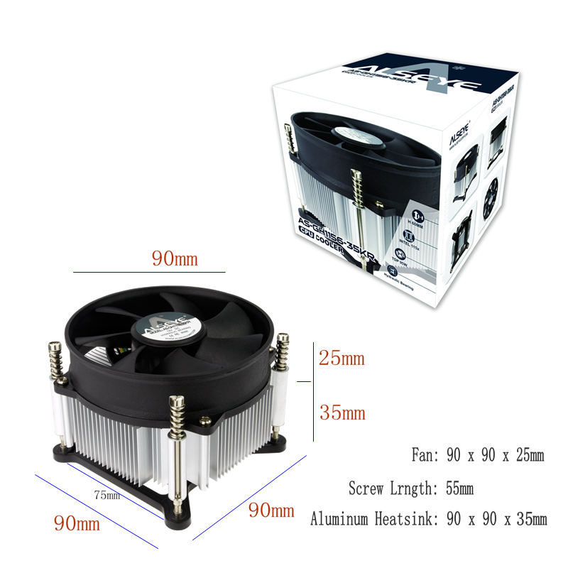 ALSEYE CPU Air Cooler Fan TDP 95W Heatsink Cooler with 90mm 4pin PWM Cooling Fan 900-2400RPM for LGA 1155/1150/1151/1156/i3/i5