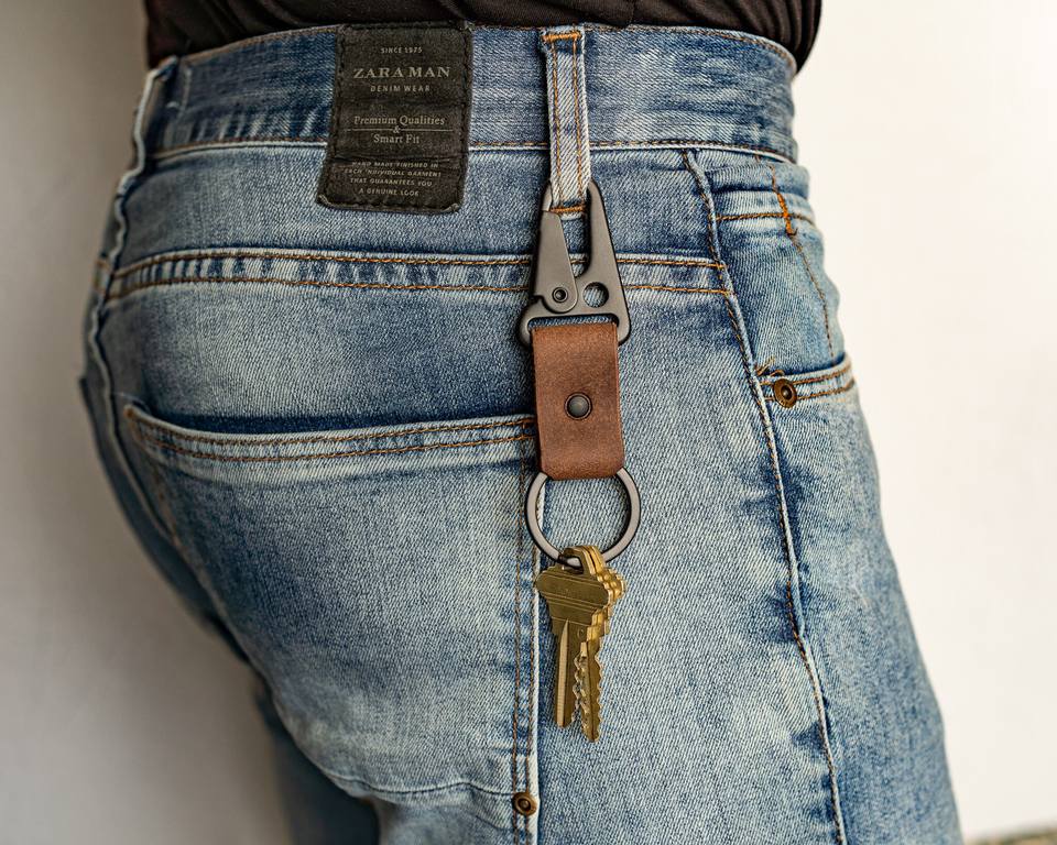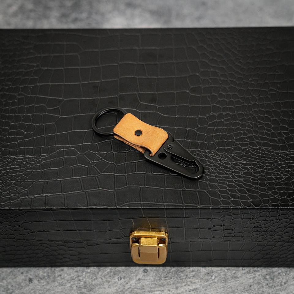 Alw สายรัดข้อมือแบบมีตะขอเกี่ยวทำจากหนังวัวแท้พร้อมพวงกุญแจห่วงคาราบิเนอร์หนังแท้โลโก้แบบกำหนดเอง