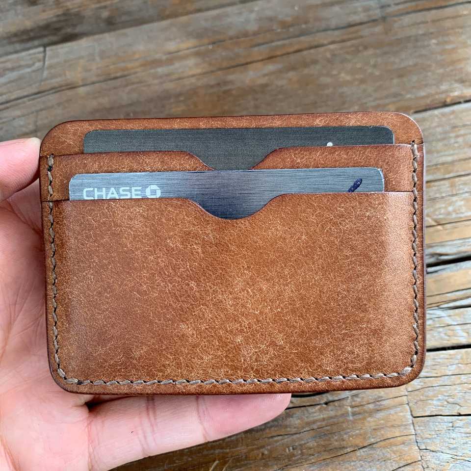 Alw ที่มีคุณภาพสูงบางมินิมอลลิสต์วินเทจที่ใส่บัตรหนังม้าบ้ากระเป๋าสตางค์ปรับแต่งได้สำหรับบัตรประชาชนและบัตรเครดิต