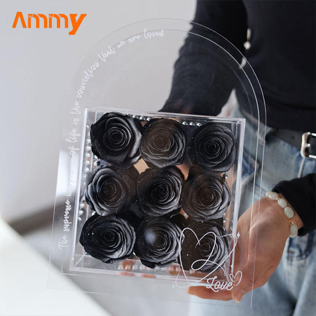 AM-PFE40แอมมี่กุหลาบที่เก็บรักษาไว้9ดอกนิรันดร์ในกล่องของขวัญอะคริลิคตกแต่งบ้านของขวัญคริสต์มาสสำหรับแม่