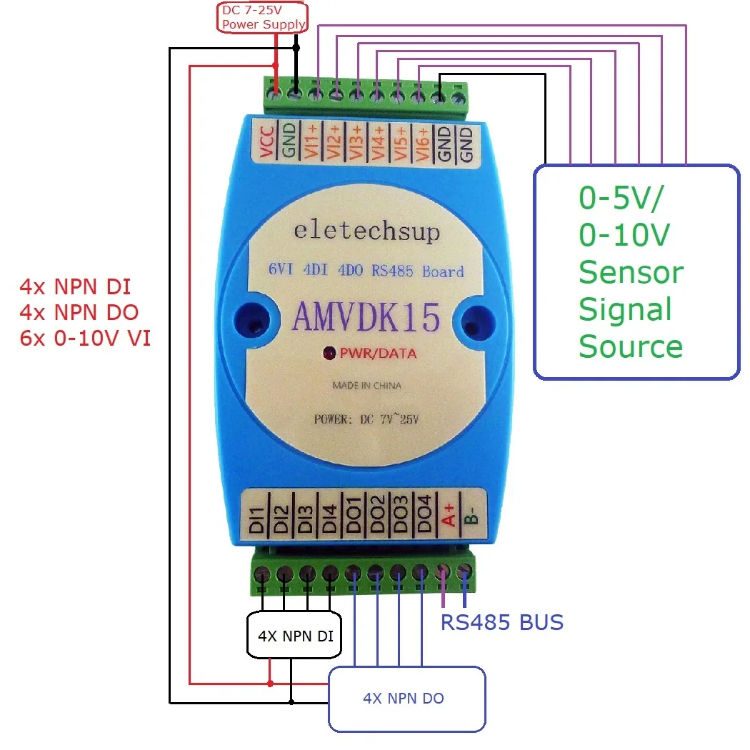 Eletechsup 6CH 6AI-4DI-4DO AMVDK15 AMIDJ14 4-20MA 0-10V อนาล็อก4ch อินพุต NPN RS485 Modbus RTU PLC IO A718ขยาย