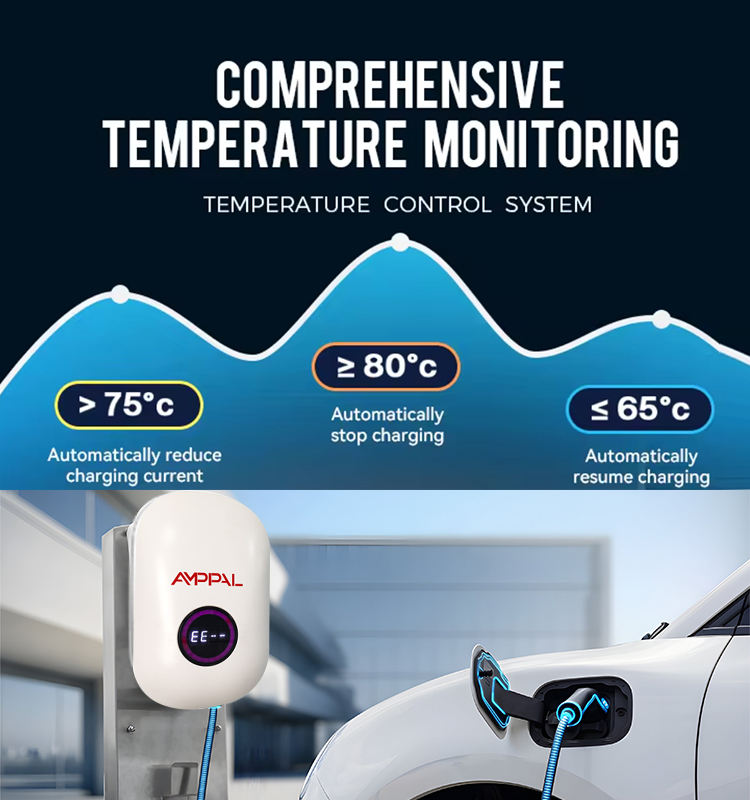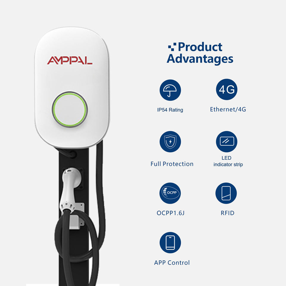 Amppal 7KW แท่นชาร์จ EV ติดผนังแบบเร็ว32A 1เฟสบ้าน wallbox Type 2อินเตอร์เฟซ CCS การชาร์จใหม่ได้รับการจัดอันดับ16A