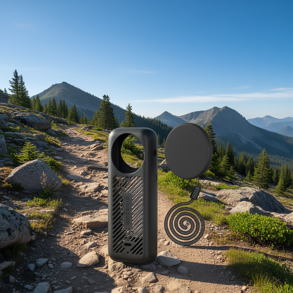 เคสป้องกัน AMagisn Insta360 X4 สีดำ พร้อมฐานซิลิโคน ฝาครอบเลนส์ สายคล้องคอ ชุดป้องกันความร้อน
