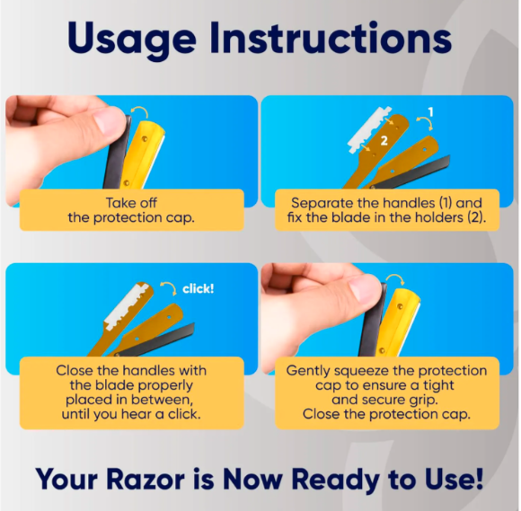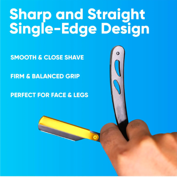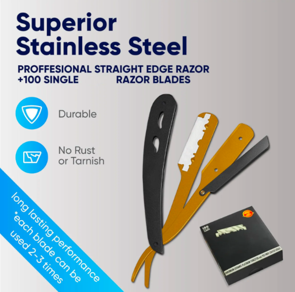 ชุดมีดโกนขอบตรงแบบมืออาชีพสีดำทองสีดำสแตนเลสช่างตัดผมเป็นมิตรกับสิ่งแวดล้อมนำมาใช้ใหม่ได้2in1ใบมีดแบบใช้แล้วทิ้ง