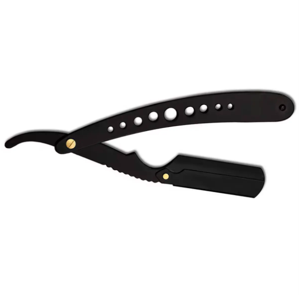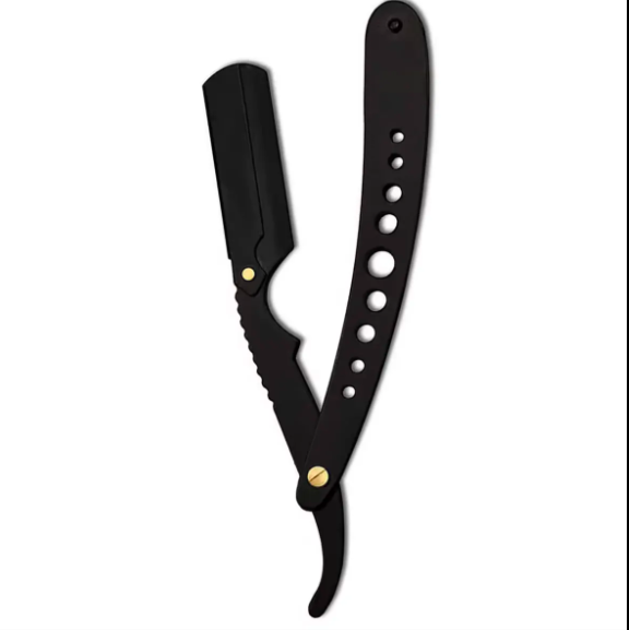 เครื่องโกนหนวดสแตนเลสเยอรมันขอบตรงคุณภาพสูงเคลือบสีดำสำหรับกำจัดขนตามร่างกายรวมถึงหนัง