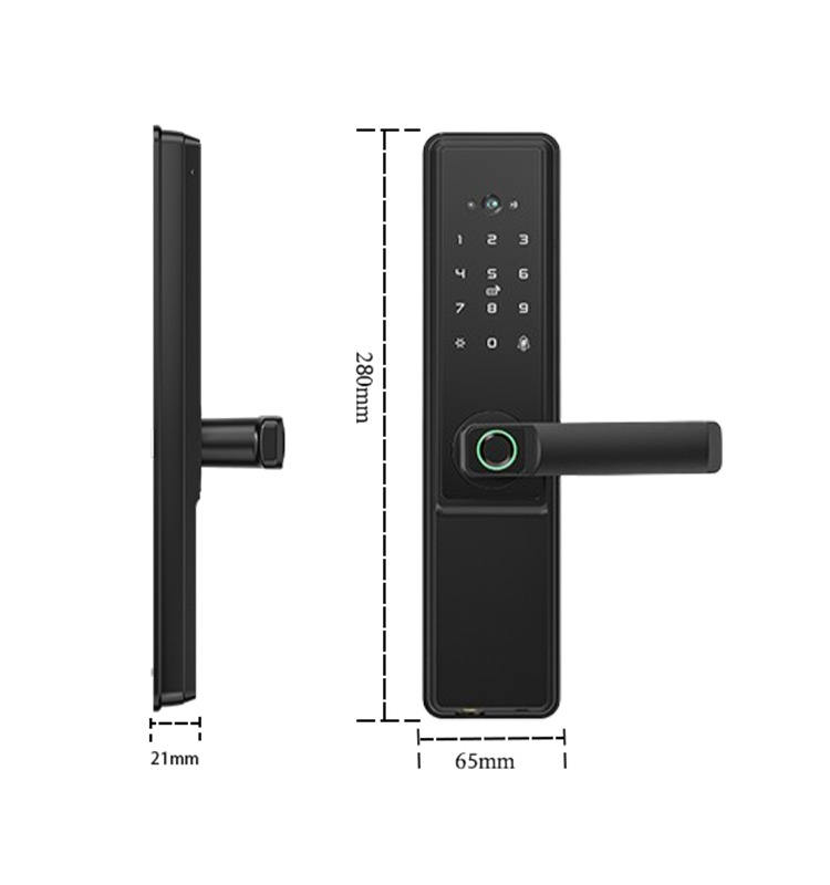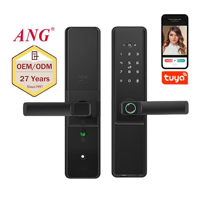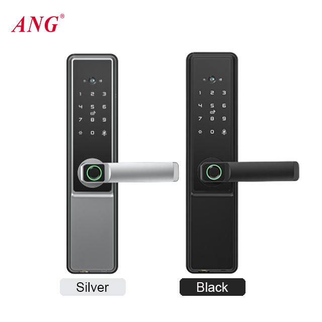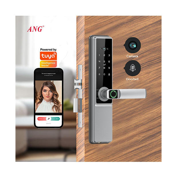ระบบล็อคประตูดิจิตอลแบบใช้แบตเตอรี่ AA พร้อมระบบสแกนลายนิ้วมือ แป้นกดรหัส และกล้อง