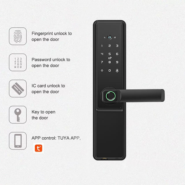 ปลดล็อค:Tuya APP/ลายนิ้วมือ/รหัสผ่าน/การ์ด/คีย์