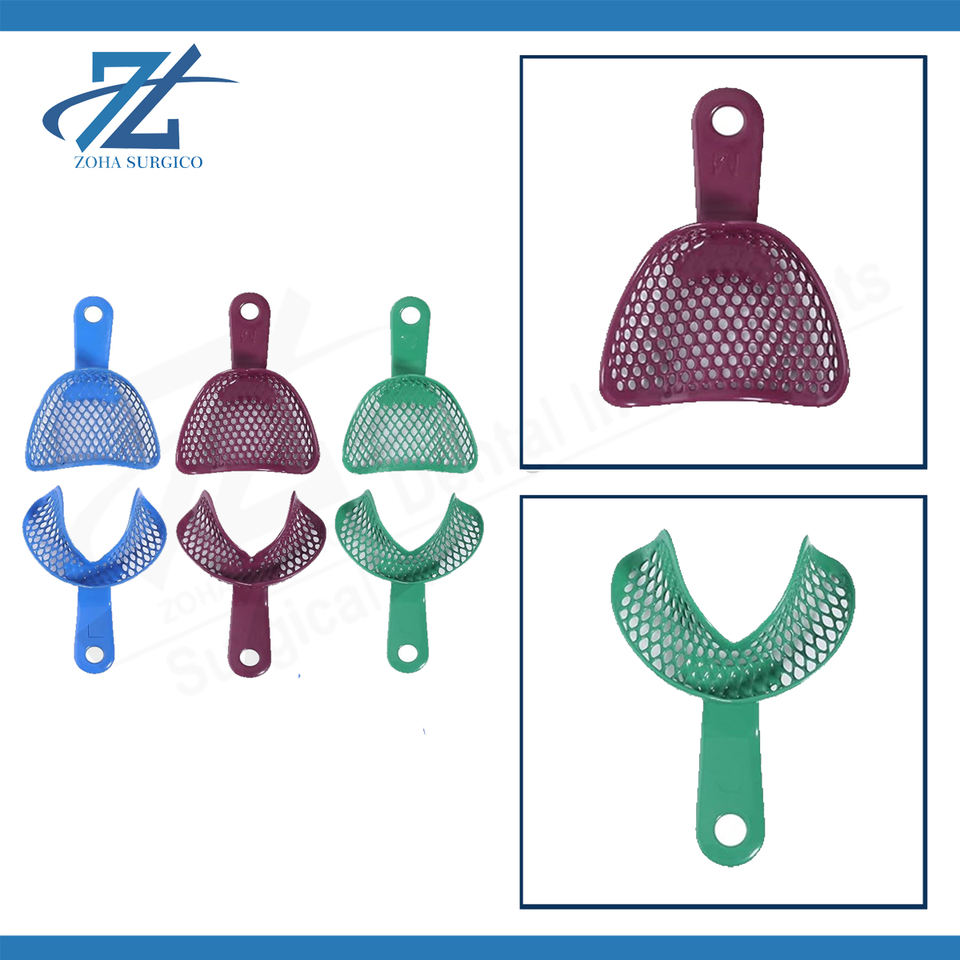 ถาดพิมพ์ฟันสแตนเลสแบบมืออาชีพสำหรับการบูรณะฟันปลอมแบบเต็มปาก ใช้งานด้วยมือ (แพ็ค 3 คู่)-Zoha Surgico ZS-8040