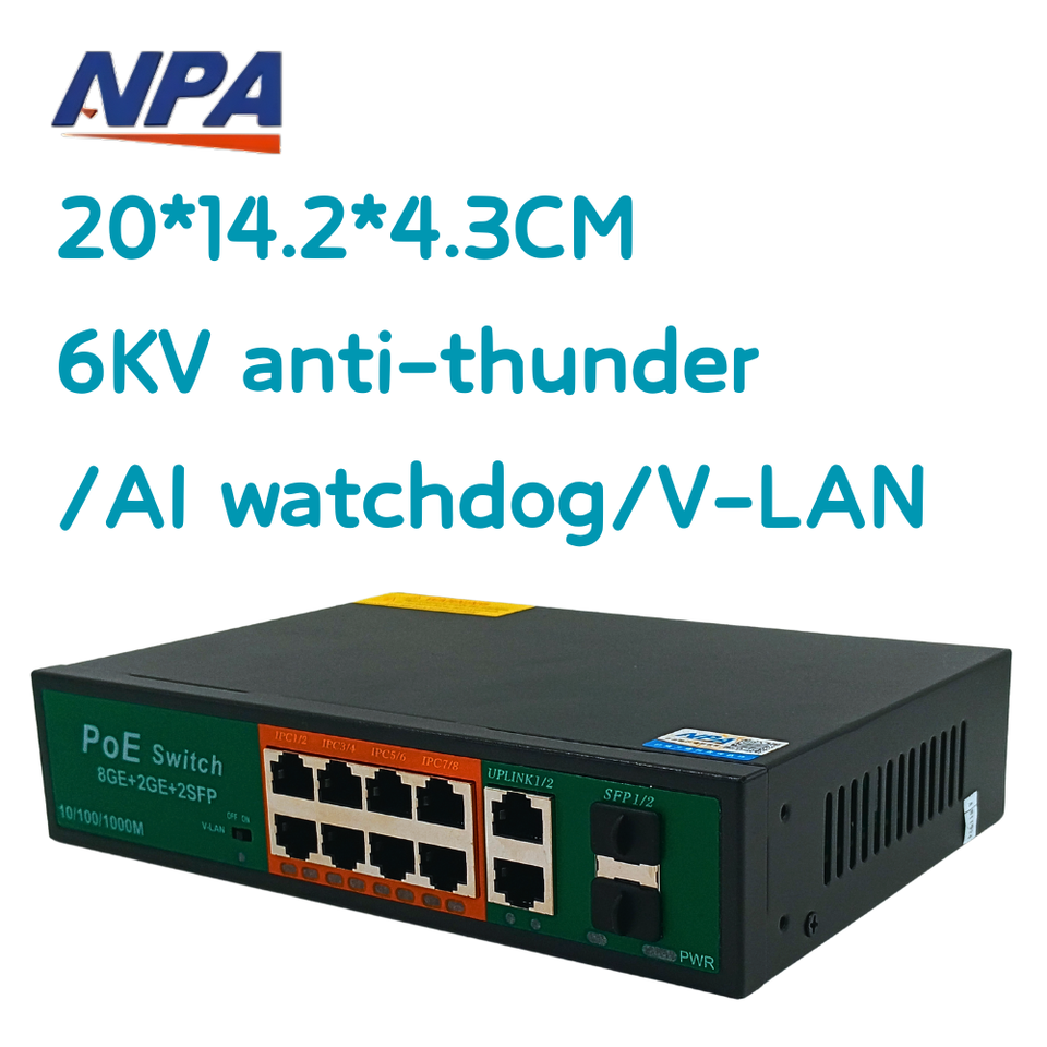 สวิตช์ ANPA 8 พอร์ต แบบไม่ต้องจัดการ รองรับ Gigabit POE SFP 10/100M V-LAN เครือข่ายอีเธอร์เน็ต Poe Switch 48v สำหรับกล้อง Hikvision IP มีสินค้าในสต็อก