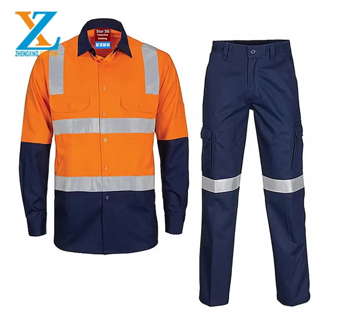 ชุดทำงานนิรภัยสะท้อนแสง ANSI Class 3 เสื้อแขนยาวแบบ Hi-Vis กางเกงคาร์โก้ พร้อมปักโลโก้ตามสั่ง