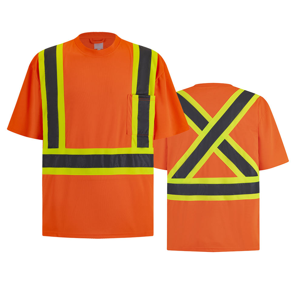 Ansi เสื้อทีเชิ้ตความปลอดภัยสะท้อนแสงสำหรับผู้ชาย, เสื้อยืดแขนยาวสะท้อนแสงด้านหลัง3 Type R สำหรับงานก่อสร้าง