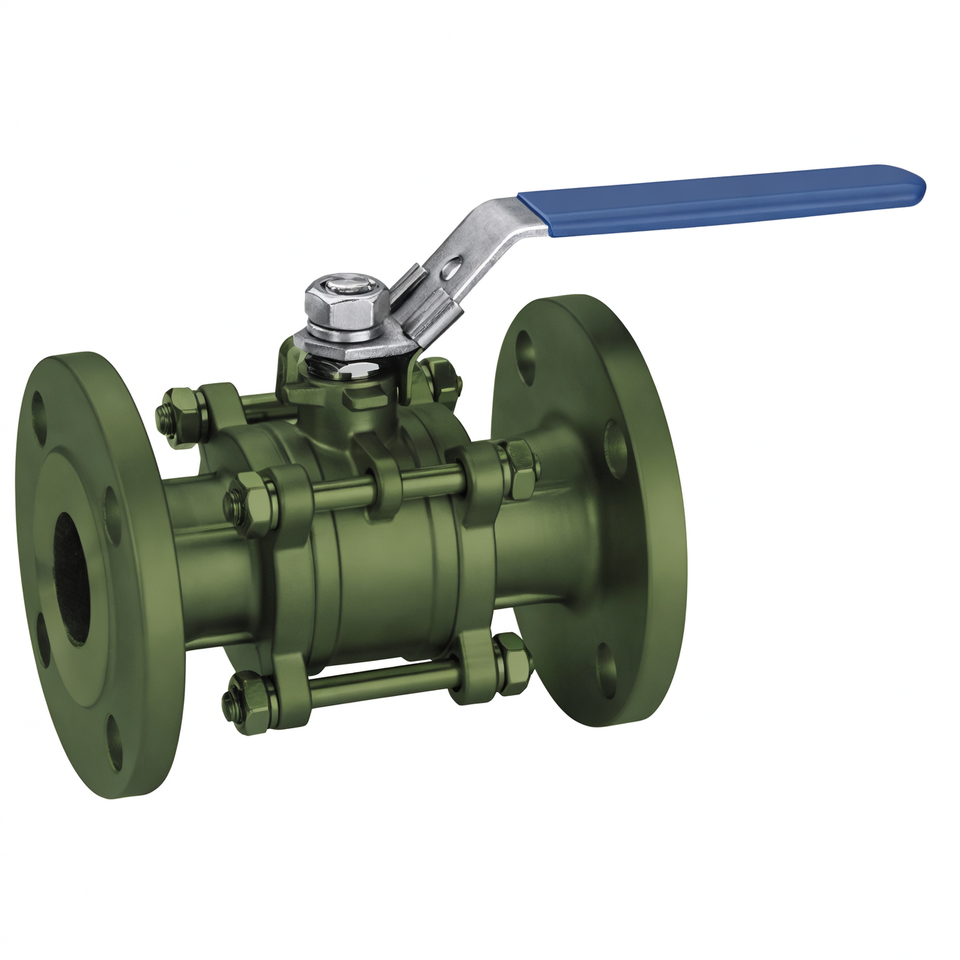 วาล์วบอลสแตนเลสแบบมีหน้าแปลน 3 ชิ้น ANSI Class 300 พร้อมมือจับ วัสดุ UPVC/ทองเหลือง/สแตนเลส