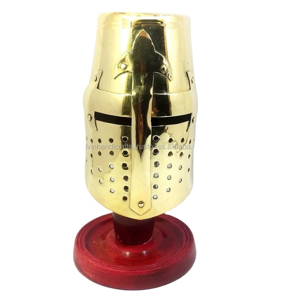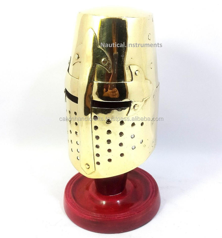 สงครามครูเสดทองเหลืองโบราณอัศวินนักรบยุคกลางเกราะมินิหมวกกันน็อค CHMH30013