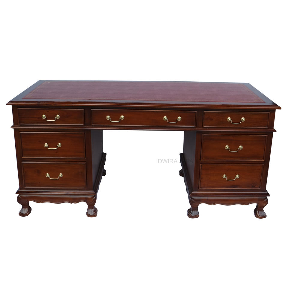 ANTIQUE REPRODUCTION FURNITURE CHIPPENDALE OFFICE PARTNER DESK MADE FROM MAHOGANY SOLID WOOD INDONESIA
