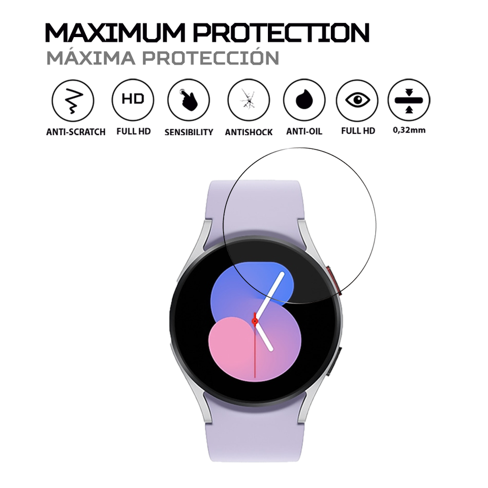 ฟิล์มกันรอยหน้าจอ ANTISHOCK สำหรับซัมซุงสำหรับกาแล็กซี่วอทช์ 5 ฟิล์มป้องกันระดับพรีเมียม