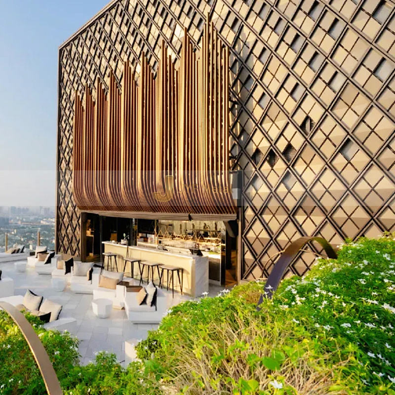 แผงซุ้มสีสแตนเลสผนังม่าน304โลหะสำหรับการออกแบบภายนอกที่เป็นเอกลักษณ์ทำจาก ANW106