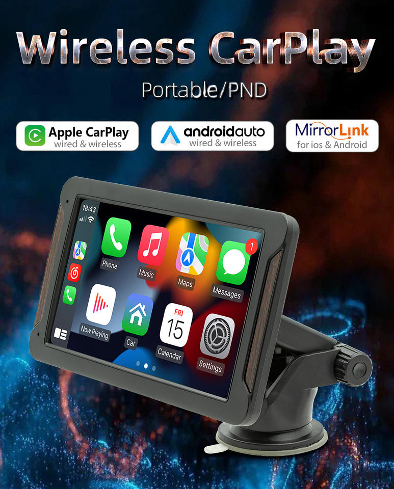 หน้าจอสัมผัสไร้สาย AOGO 720P รองรับ Carplay เชื่อมต่อกับ GPS ของโทรศัพท์ หน้าจอ Carplay ขนาด 7 นิ้ว ระบบนำทางในรถยนต์ PND