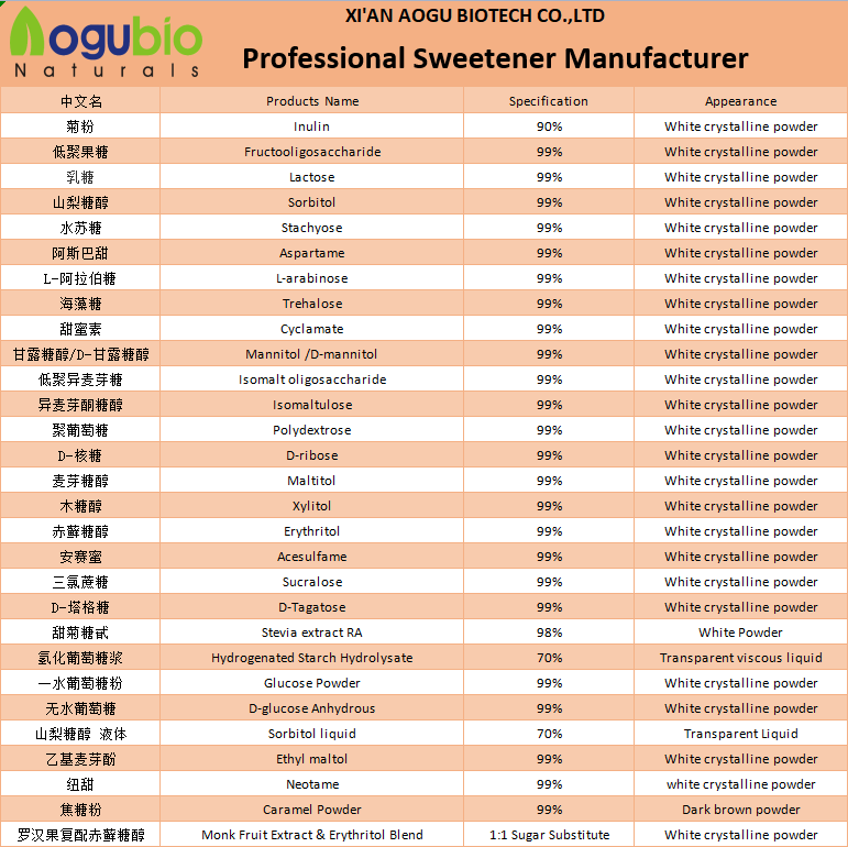 เพิ่มการโภชนาการ, สารให้ความหวานชนิด