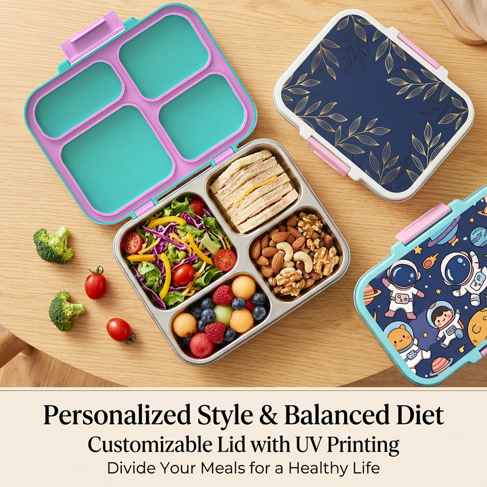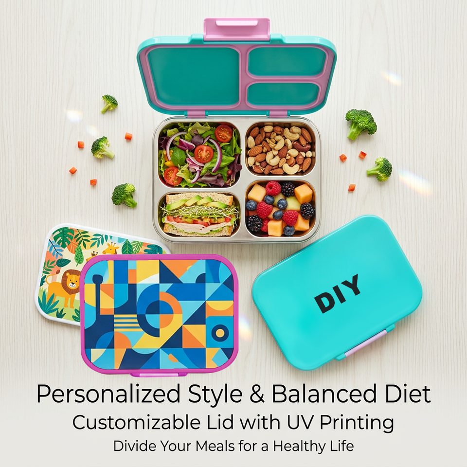 กล่องอาหาร AOHEA แบบกำหนดเอง กล่องแซนวิชกันรั่วสำหรับไมโครเวฟ กล่องข้าวสแตนเลส 304 กล่องอาหารกลางวันเด็ก กล่องเบนโตะ