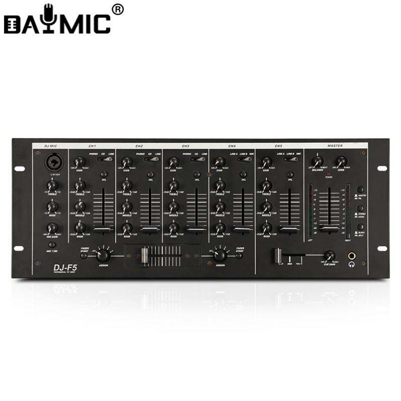 Aoshen ชั้นมิกเซอร์ดีเจ5ช่องติดตั้งได้กับไมโครโฟน3แบนด์ EQ และ crossfader แบบเปลี่ยนได้พร้อมรีเวิร์ส