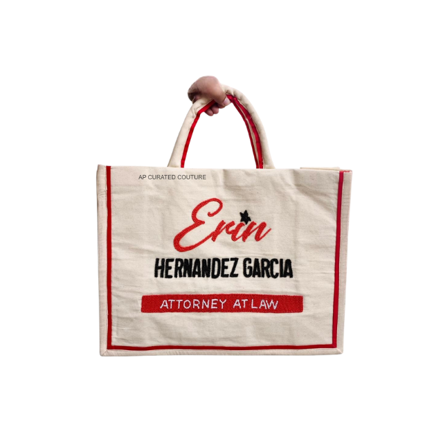 กระเป๋าโท้ทปักลายแบบกำหนดเองได้จาก AP Curated Couture พร้อมซิปปิด-สไตล์อังกฤษ แฟชั่นทันสมัย ซับในผ้าฝ้ายสีพื้น ทำด้วยมือ