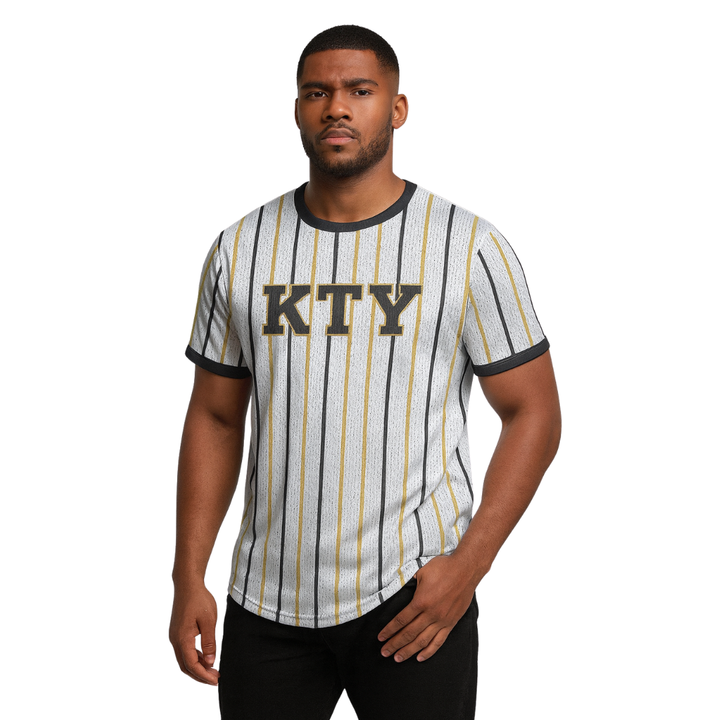 APA Grey Pinstripe Pullover Baseball Jersey 100% Polyester Mesh Alpha Fraternity Shirt with Custom Embroidered Applique Logos
