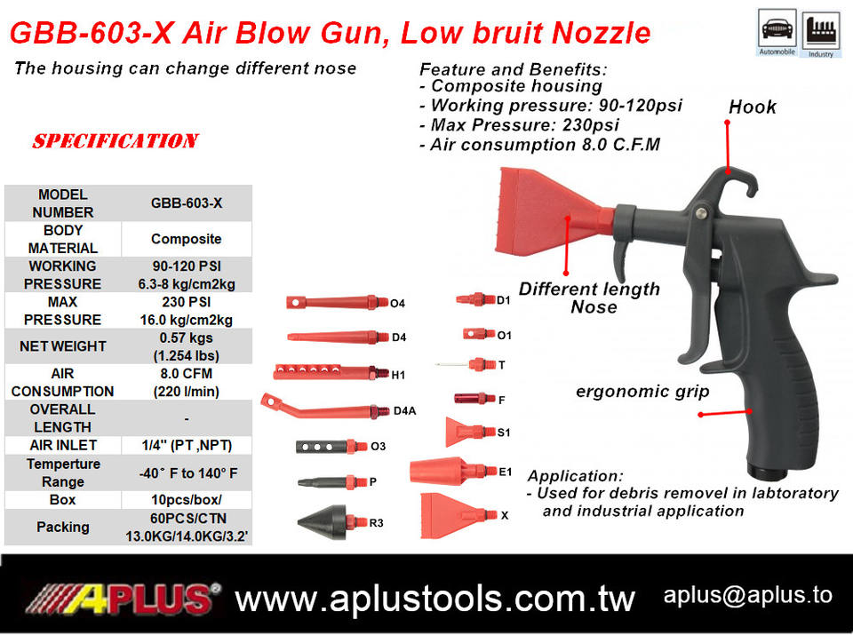 ปืนเป่าลม GBB-603-X Aplus หัวฉีด bruit ต่ำที่อยู่อาศัยคอมโพสิตและหัวฉีด