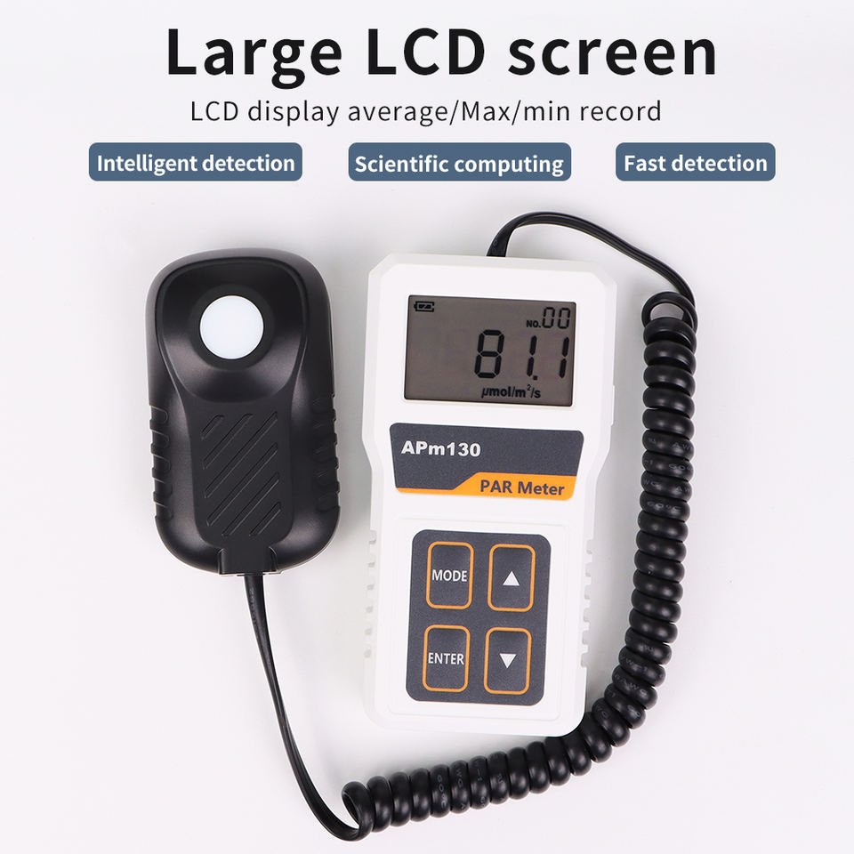 เครื่องวัดแสง APM130 PAR Meter PPFD แบบดิจิตอล พร้อมเซ็นเซอร์ควอนตัม กันน้ำ สำหรับทดสอบแสงพืช บันทึกข้อมูลได้