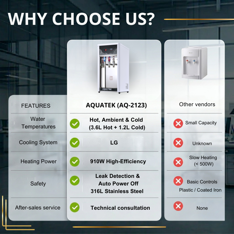 AQ-2123เครื่องทำน้ำเย็นแบบเคาน์เตอร์สามอุณหภูมิแลกเปลี่ยนชนิดพร้อมระบบ RO (AQ-50-1)