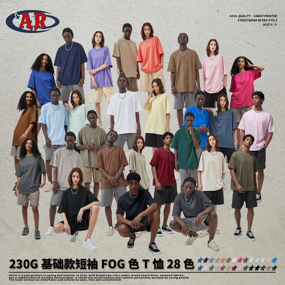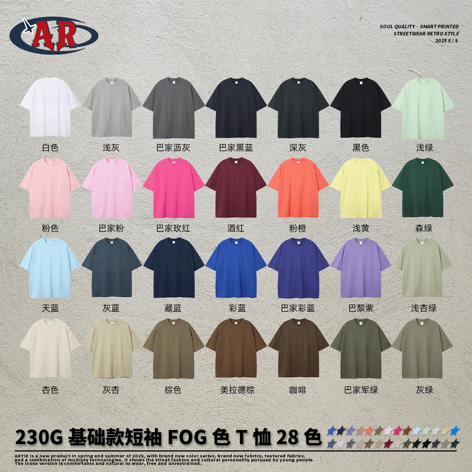 ยี่ห้อ AR เส้นด้ายคู่230กรัมเสื้อยืดผู้ชายแขนสั้นผ้าคอตตอนแท้ทรงหลวมสีทึบทันสมัยแนวยุโรปอเมริกันไซส์ใหญ่พิเศษ