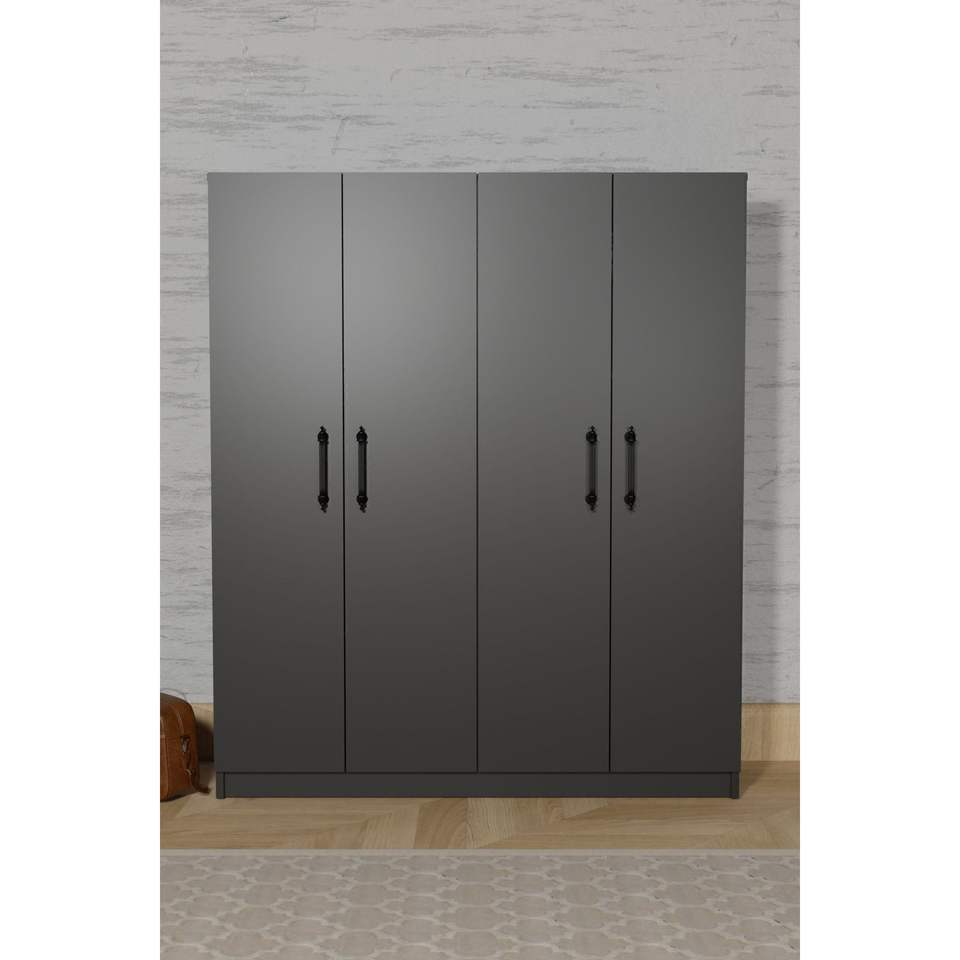 ตู้เสื้อผ้าไม้แบบตั้งพื้น 4 บาน สีแอนทราไซต์ เกรย์ ยี่ห้อ ARENA AekaOnline รุ่นโมเดิร์น สำหรับห้องนอน มีชั้นวาง 6 ชั้น ไม้แขวน 2 อัน วัสดุประตูทำจาก MDF