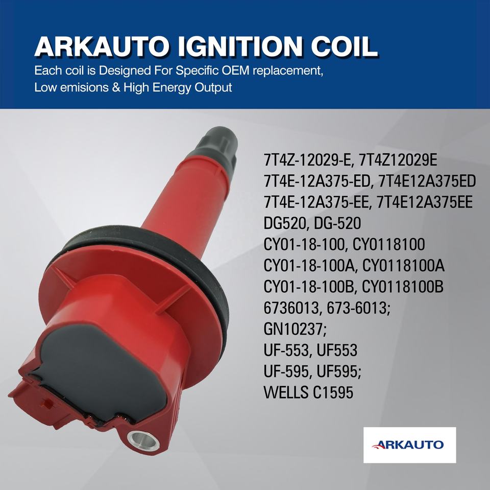 Arkauto ชุดคอยล์จุดระเบิดประสิทธิภาพสูง2หมุด UF553 7T4Z-12029-E สำหรับ Ford F-150 Mustang Explorer Lincoln MKS MKT MKX 3.5 3.7 V6