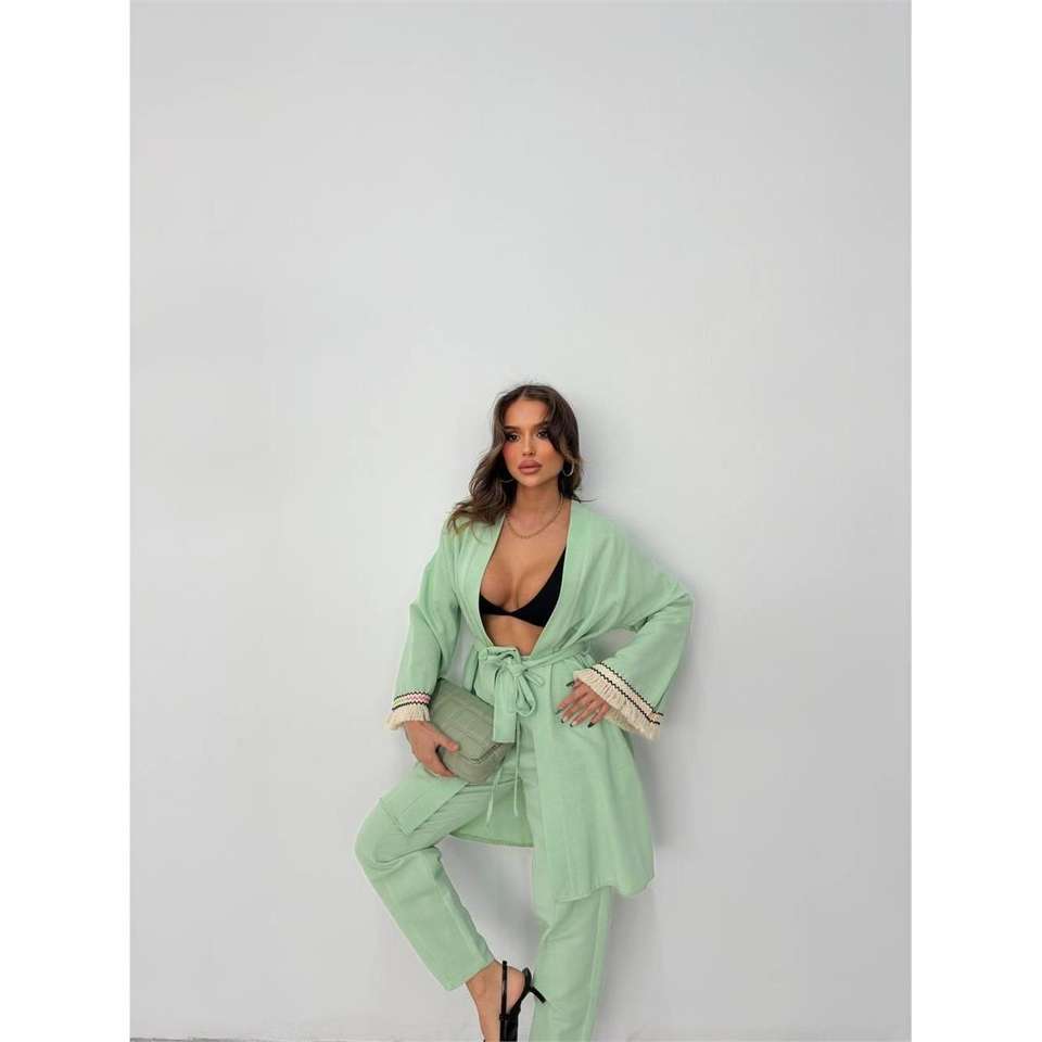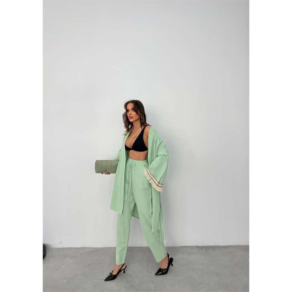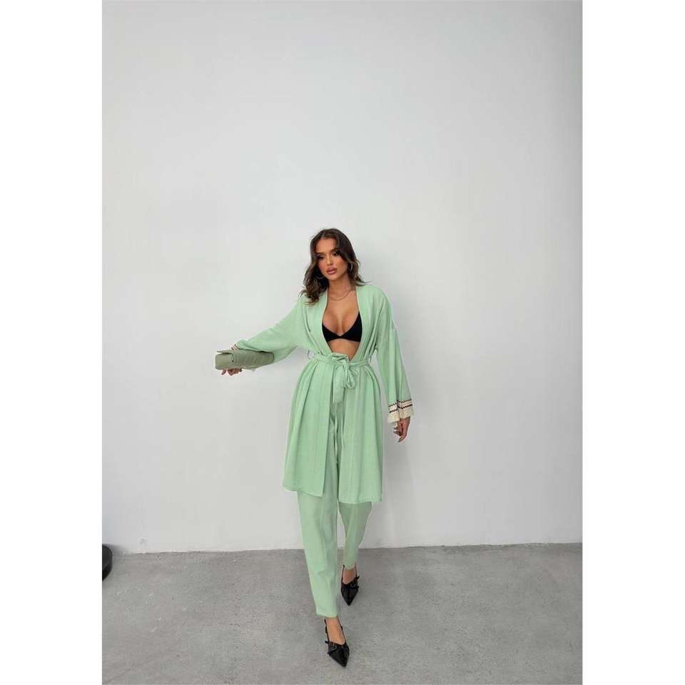 ชุดกิโมโนออกกำลังกายยี่ห้อ ARM คอตั้ง ผ้าโพลีเอสเตอร์ ลายพิมพ์ ทรงเข้ารูป ความยาวระดับเข่า สีมิ้นท์ ขั้นต่ำ 3 ชิ้น