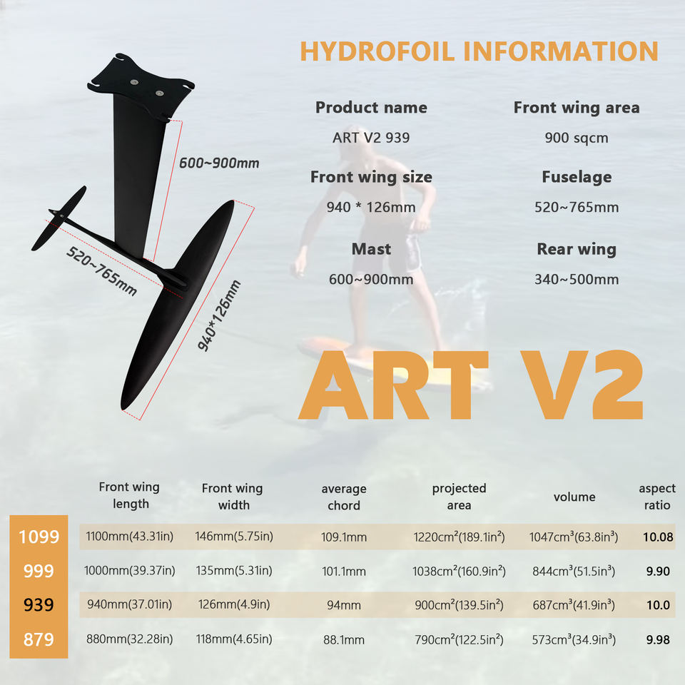 ปีกไฮโดรฟอยล์คาร์บอน ART V2 939 ดีไซน์ High Aspect สำหรับการขึ้นบินง่าย บินทรงตัวได้ดี และประสิทธิภาพสูงสำหรับนักเล่นขั้นสูง
